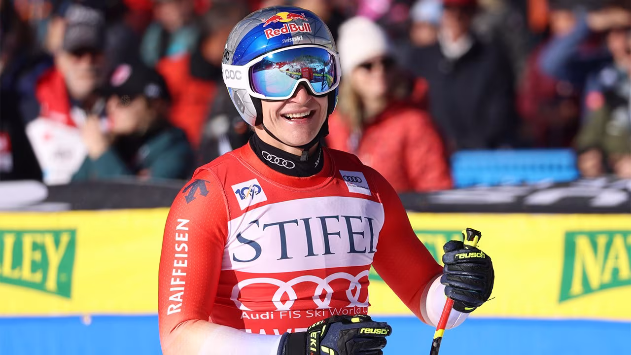 Marco Odermatt jubelt über den Sieg im Super G von Beaver Creek!