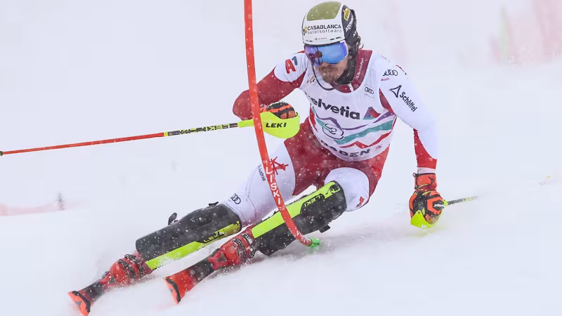 Atle Lie McGrath (NOR) scheidet im ersten Lauf mit Zwischenbestzeit wie zuletzt als Halbzeit-Führender in Madonna aus. Auch Lokalmatador Loic Meillard, mit dem Roten Trikot gestartet, und Samuel Kolega (CRO), Dritter in Madonna, fädeln ein.